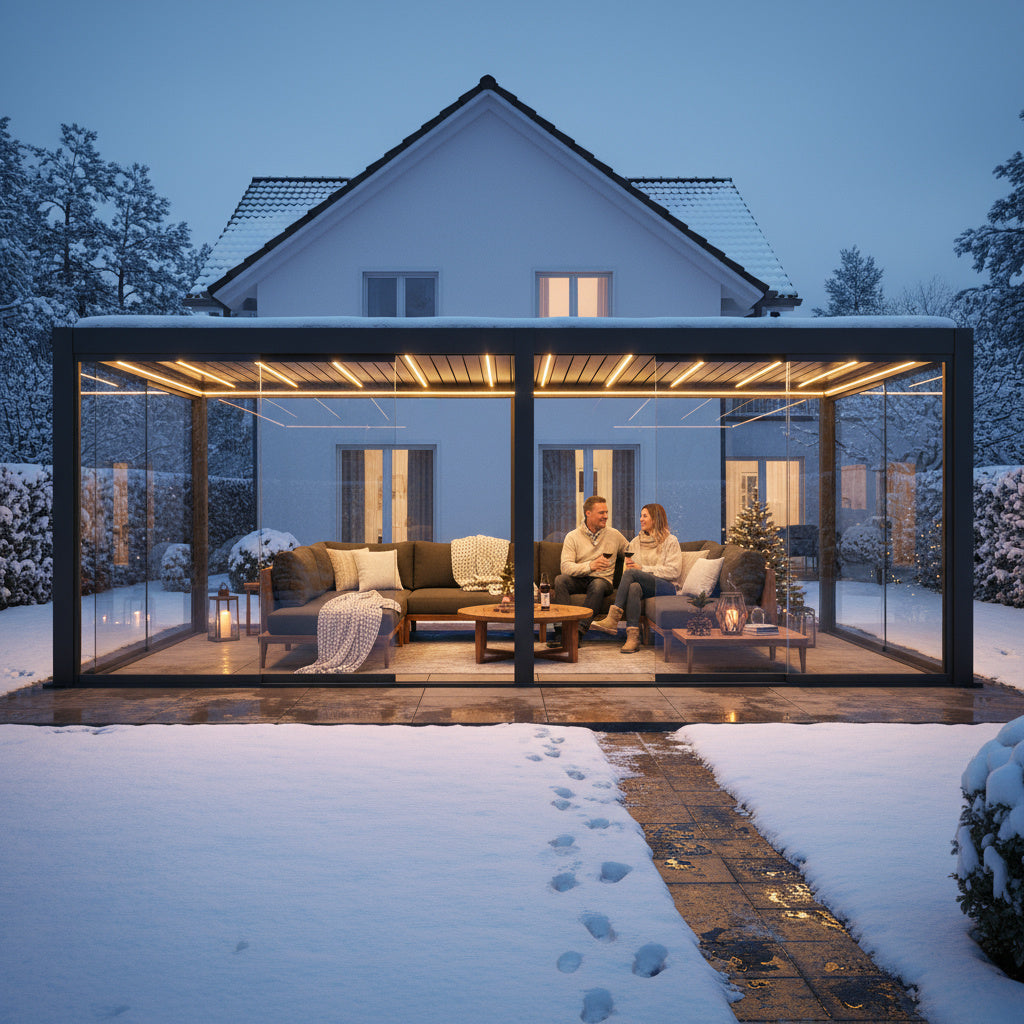 Der SkyPergola Wintergarten verbindet die Leichtigkeit einer Pergola mit dem Komfort eines geschlossenen Wohnraums. Durch die stabilen Glaswände, isolierende Materialien und die moderne LamellentechnolDer SkyPergola Wintergarten vereint modernes Design mit ganzjährigem Wohnkomfort – stilvoll, wetterfest und vielseitig nutzbar.